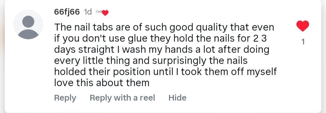 Syeda Minhal Such pretty nails! The adhesives are of amazing quality! Will order again and definitely recommend them to everyone I know!