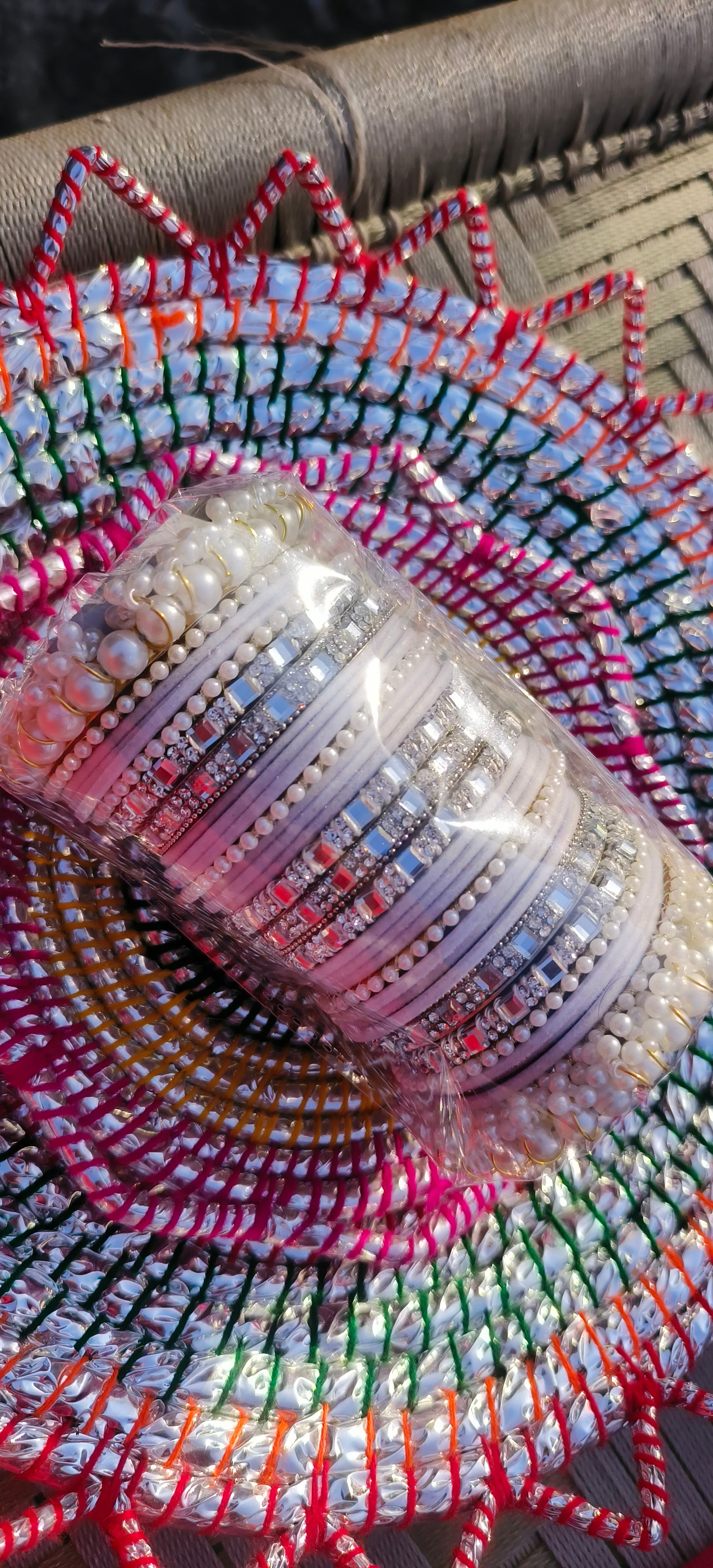 Designed for the Nikah bride, this elegant white bangle set exudes grace and purity. A timeless piece to complete your special day’s look!