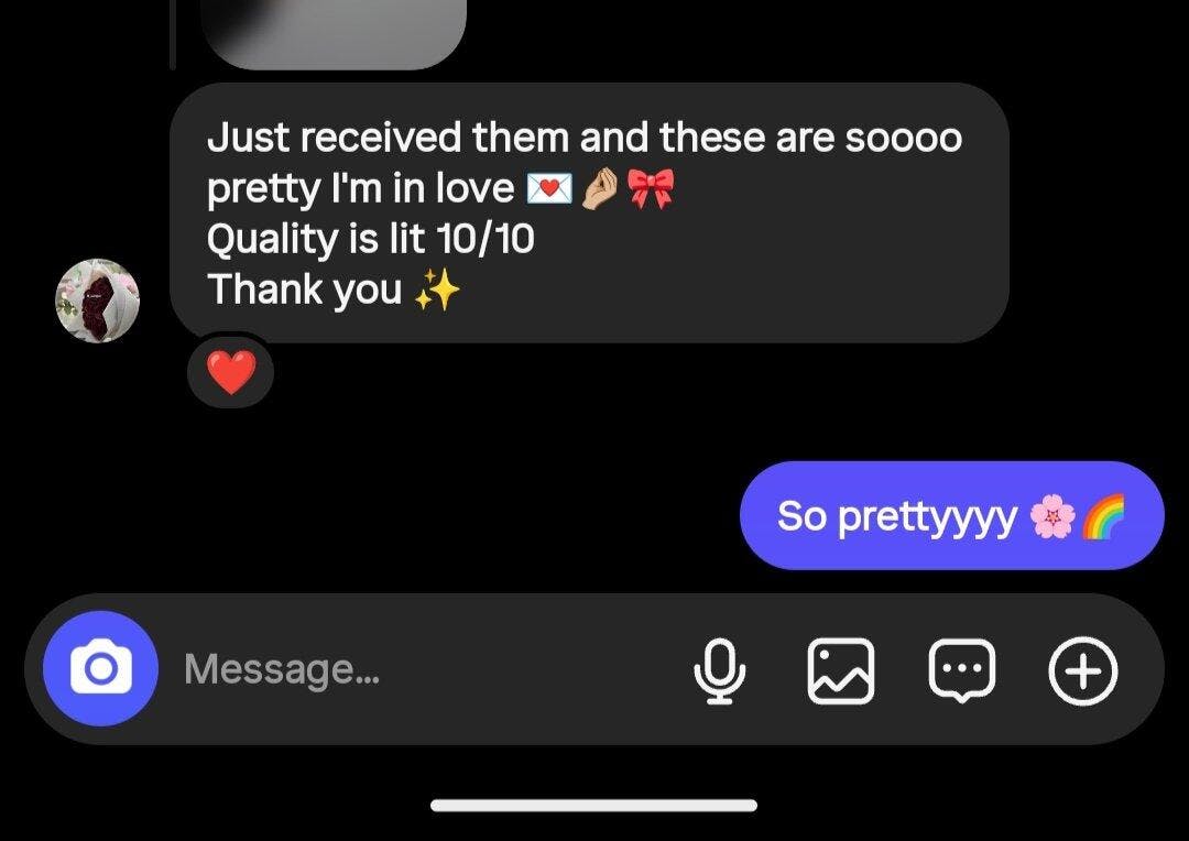 A.G The nails were good quality, and exactly same as shown in the picture. I gave four stars because they advertised a FREE APPLICATION KIT (including buffer, cuticle stick, press-on stickers/glue, alcohol pad, etc.), but they only sent press-on stickers and an alcohol pad.