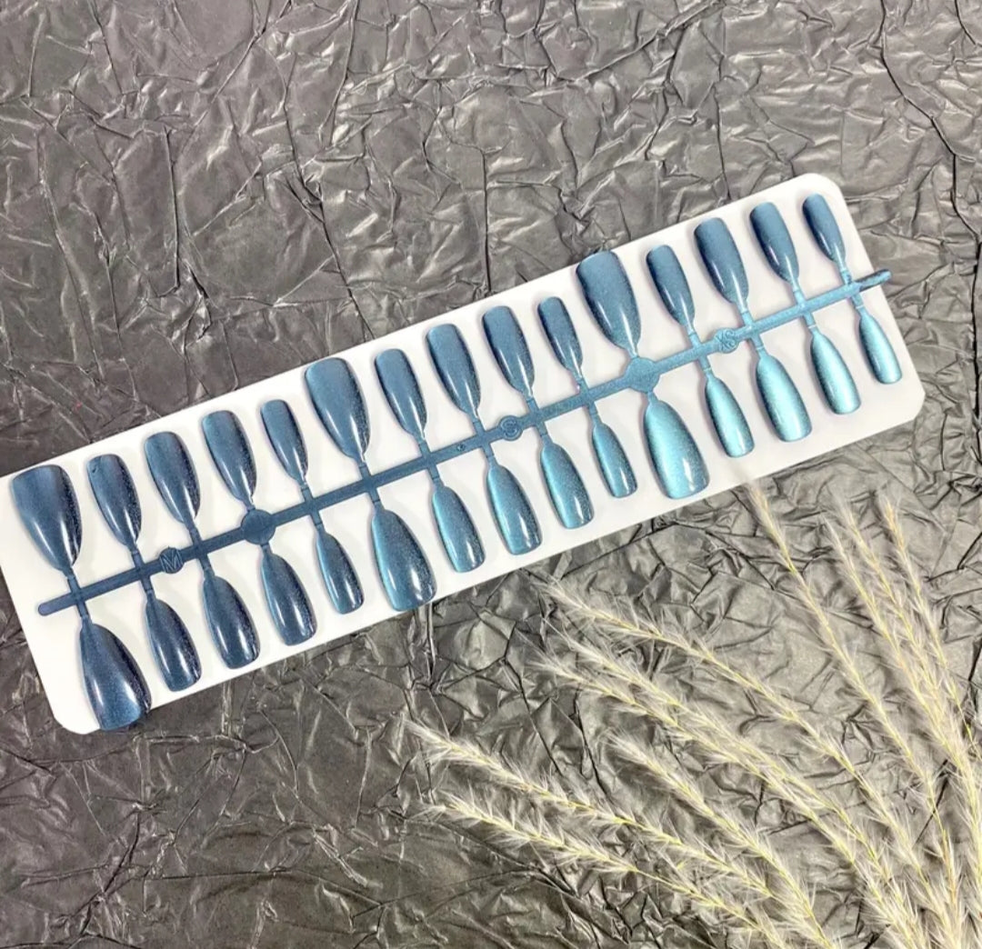 Sky Aura – 15pcs Long Cat Eye Nails with Application Kit