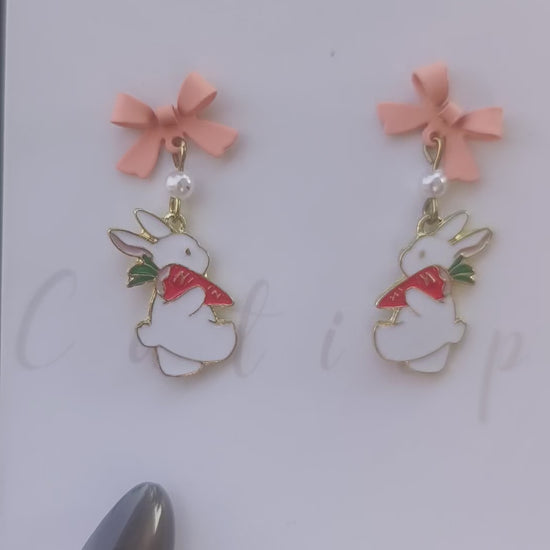 🐰🥕 Bunny Rabbit & Carrot Dangle Earrings – Cute Holiday-Themed Fashion Jewelry for Women